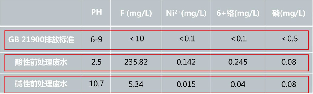 Ion detection results of comprehensive wastewater from acid and alkali pretreatment process bath